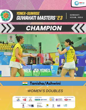 Guwahati, Dec 10 (IANS) India's Ashwini Ponnappa and Tanisha Crasto on Sunday won the women’s doubles title of the Guwahati Masters 2023 badminton tournament, beating Chinese Taipei’s Sung Shuo Yun and Yu Chien Hui 21-13, 21-19 in the final in Guwahati, Assam on Sunday.