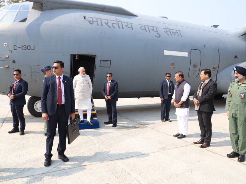 Guwahati, Feb 14 (IANS) Prime Minister Narendra Modi on Saturday began his one-day tour of Assam by landing in the Chabua airfield in Dibrugarh district.