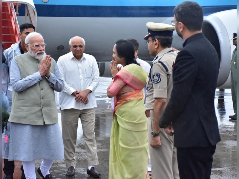 Gandhinagar, Oct 30 (IANS) Prime Minister Narendra Modi was accorded a warm welcome in Gujarat on Thursday, as he reached his home state for a two-day visit and is set to participate in the 'Rashtriya Ekta Diwas' (National Unity Day) celebrations, commemorating the 150th birth anniversary of Sardar Vallabhbhai Patel -- 'Iron Man of India’, this year.