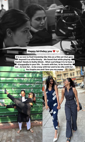 Mumbai, May 13 (IANS) Shriya Pilgaonkar on Monday showered love on her 'Guilty Minds' co-star Sugandha Garg on her 42nd birthday, saying it's so rare to find friendship like this on a film set that goes beyond it so effortlessly.