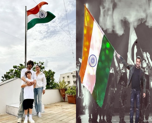 Mumbai, Aug 15 (IANS) Bollywood megastar Shah Rukh Khan, who is currently gearing up for his upcoming grand release 'Jawan', celebrated Independence Day on Tuesday. The actor was spotted hoisting the national flag with his youngest son AbRam and wife Gauri Khan by his side. Later, as his sea of fans gathered for a sight of him, the superstar waved and saluted his admirers.
