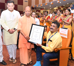Gorakhpur, Sep 5 (IANS) On the occasion of Teachers' Day, Uttar Pradesh Chief Minister Yogi Adityanath on Thursday displayed exceptional respect towards teachers. The CM took a step beyond protocol, which left everyone both amazed and applauding at a ceremony to honour teachers held at the Baba Gambhirnath Auditorium in Gorakhpur.