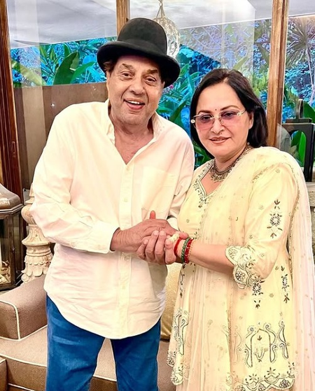 Mumbai, May 3 (IANS) Veteran actor Dharmendra met his 'lovely co-star' Jaya Prada, who came to see him along with a family friend of hers.