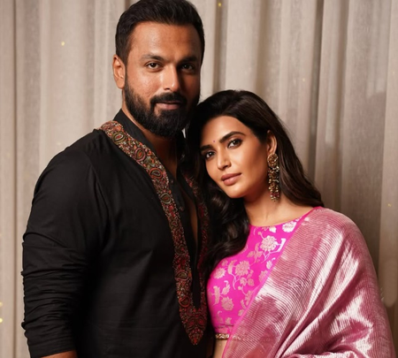 Mumbai, March 23 (IANS) Actress Karishma Tanna got into a bicep flexing competition with hubby Varun Bangera. She posted a fun video on social media of the couple indulging in some 'Sunday Madness'.