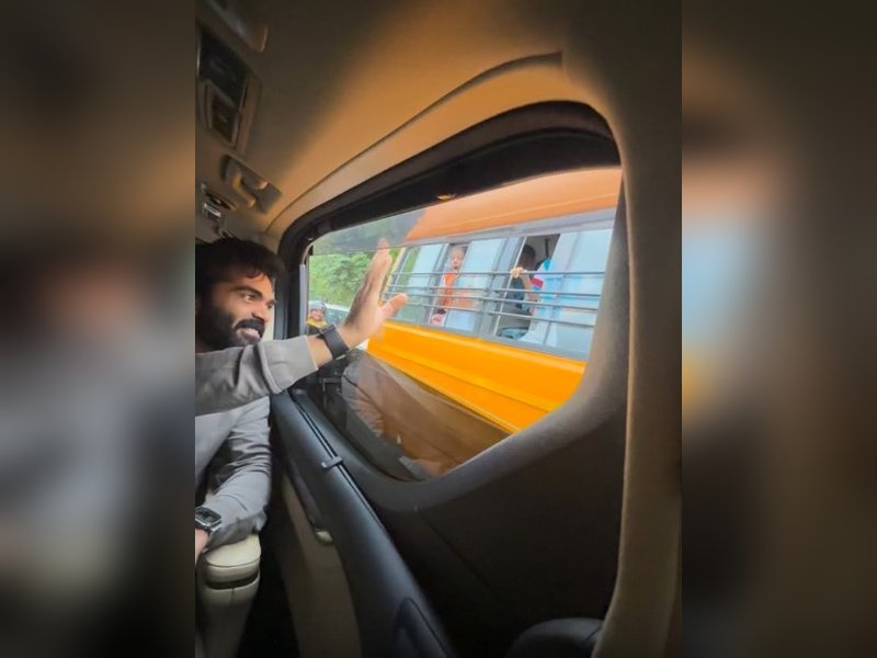 Silambarasan TR adorably greets children on their way to school