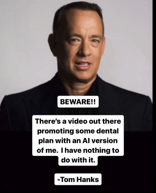 Los Angeles, Oct 2 (IANS) Hollywood star Tom Hanks has warned fans of an AI version of him in an advertisement.