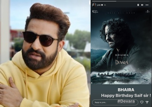 Mumbai, Aug 16 (IANS) Actor NTR Jr who is known for 'RRR', took to his social media on Wednesday to send birthday wishes to actor Saif Ali Khan. Wishing the actor, NTR Jr shared a poster of Saif from their upcoming film 'Devara'.